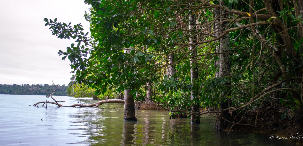 We hiked into the Tambopata national reserve on an early, wet morning and got on a boat to catch a glimpse of amazon’s wildlife. We spotted Caiman’s, giant otters and many other beautiful species. This shot was taken when our boat was in the middle of the lake and we could catch a 360 degree view of what Amazon rainforest had to offer. Misty clouds were a perfect backdrop for wet trees to create a great natural contrast between brownish lake water, green trees and grey sky.