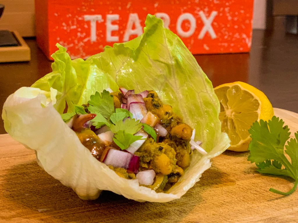 - Wash the lettuce cups, and spoon in some cooked black eyed peas masala.